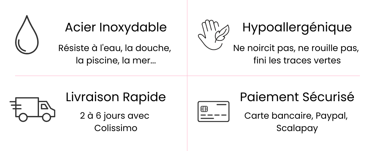 Tous nos bijoux sont en acier inoxydable et hypoallergénique